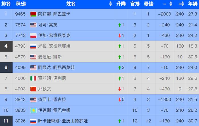 接下来,佩古拉、莱巴金娜同时打进八强的话,郑钦文的世界排名还会继续下降,将跌至第十位。